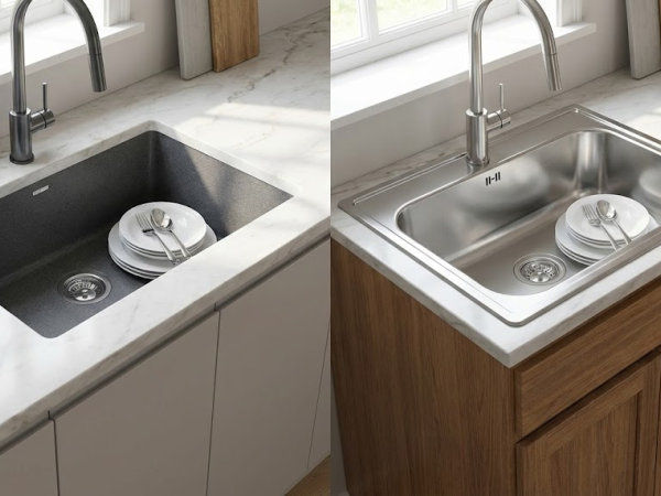 Интегрированные (подстольные): Мойка монтируется ниже уровня столешницы. Это выглядит потрясающе и позволяет смахивать крошки прямо в раковину, но требует профессионального монтажа и каменной столешницы.