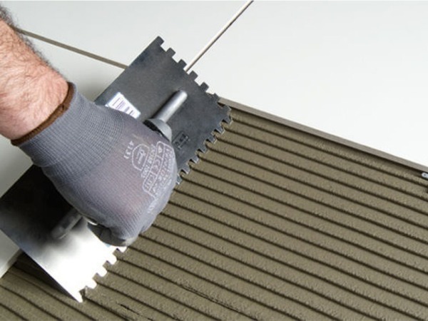 Клей наносится и на основание, и на плитку (при крупном формате)