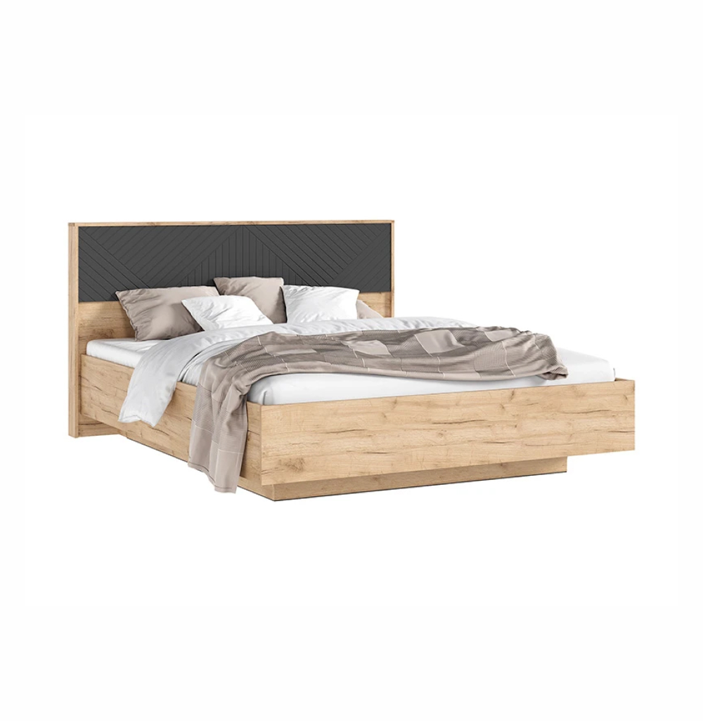 - Флэш Кровать парящая 1.6 м с подъемным механизмом, Браш Графит / Дуб Крафт