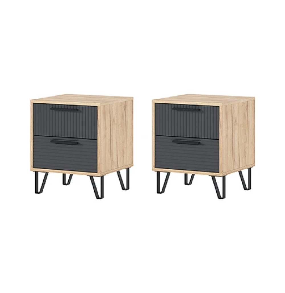 Флэш Тумбы прикроватные, Браш Графит / Дуб Крафт, 2 шт