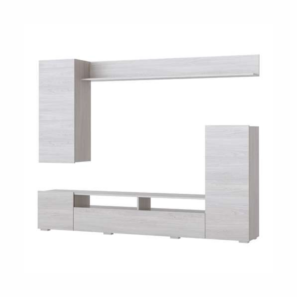 Гостиная "Мия" состоит из 2-х секций. Напольная тумба с пеналом и навесная антресоль с полкой. Антресоль крепится к стене через навесные элементы.
