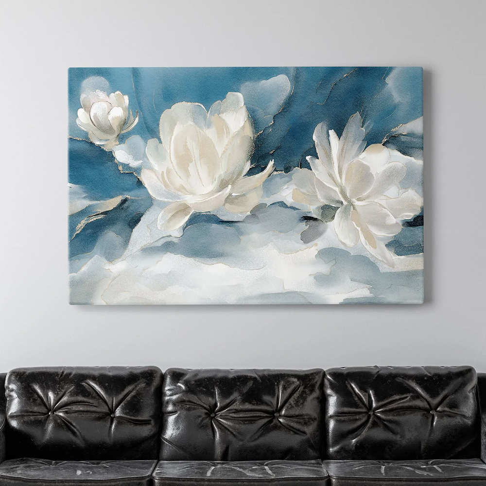 Картина на стену большая “Абстракция из пионов ” выполнена в нежных белых, кремовых и синих цветах. Картина на холсте гармонично смотрится в любом помещении. Интерьерная картина в спальню сохраняет цвет более 10 лет, не боится влаги и солнца, поскольку создана с помощью краски на водной основе. Картина переносится на холст с помощью латексной печати премиальными немецкими чернилами. Большая картина в гостиную имеет крепление “крокодил” в комплекте, можно сразу повесить на стену и не думать о способах установки. Картины легко подвешиваются на стену с помощью зубчатого крепления на обратной стороне. Настенная картина в детскую с высоким качеством печати отличается максимальной детализацией. Картина на холсте в качестве подложки использует подрамник из дерева — материала премиум-качества, холст натянут на прочный подрамник из дерева. Настенный декор помогает полностью преобразить помещение, сделать его уютным и элегантным. Его можно сразу повесить на стену или же вставить в рамку, чтобы продлить срок эксплуатации картины и снизить уровень воздействия на краску.