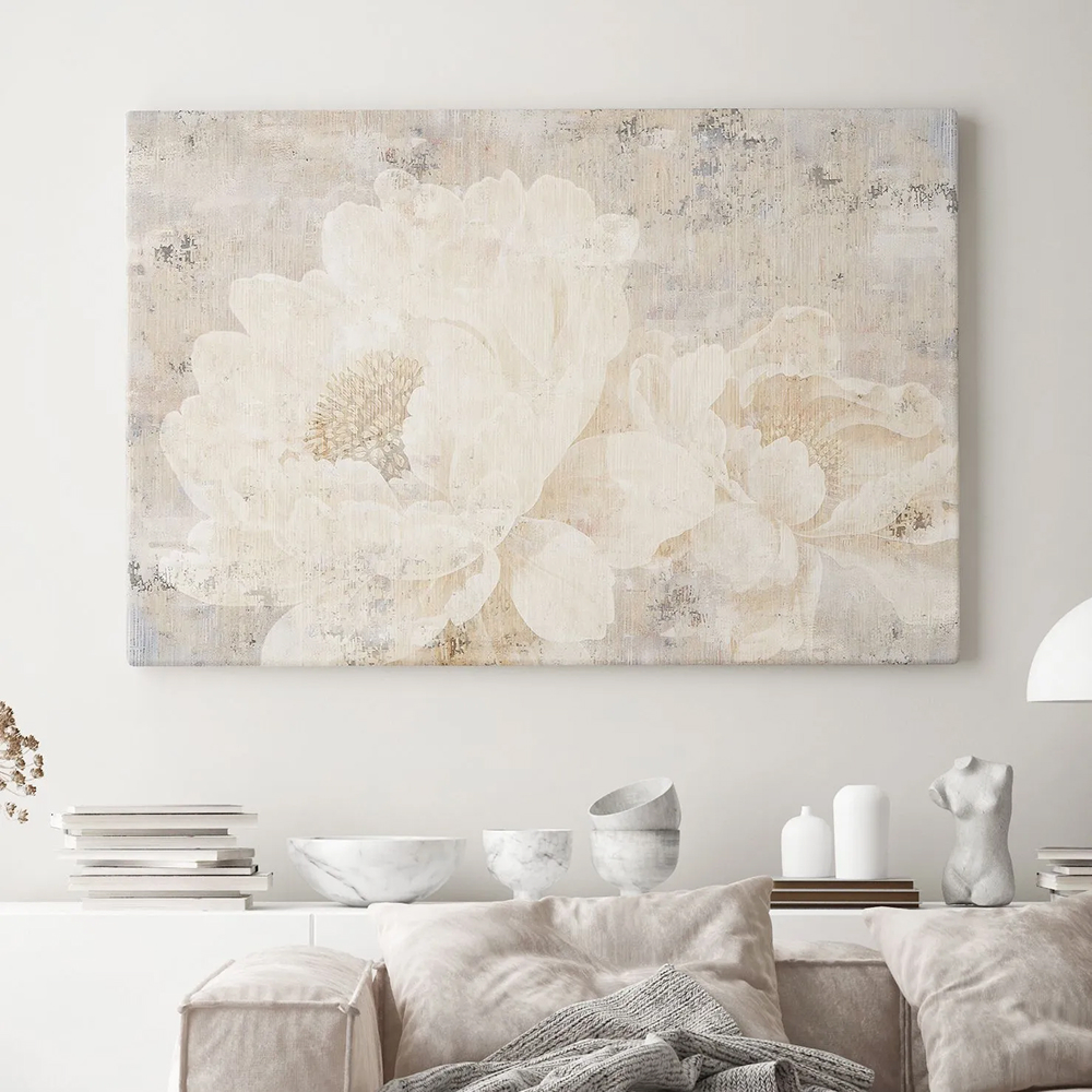 Интерьерная картина "Силуэт пионов" на холсте, большая, размер 60х90 см