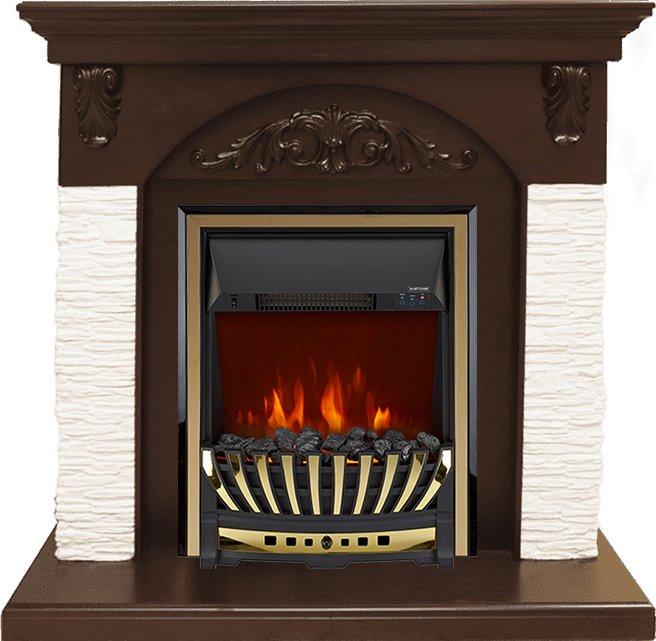 - Каминокомплект Bern Сланец мелкий белый / Темный дуб с очагом Aspen Gold