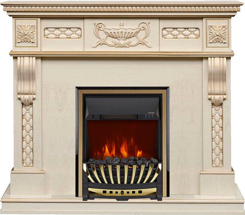 - Каминокомплект Corsica - Слоновая кость с патиной (Ширина 1100) с очагом Aspen Gold