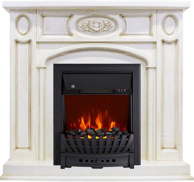 - Каминокомплект Florence - Слоновая кость с патиной с очагом Aspen Black