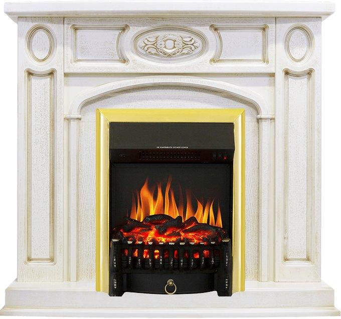 - Каминокомплект Florence - Слоновая кость с патиной с очагом Fobos FX Brass