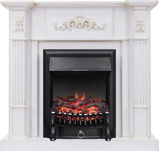 - Каминокомплект Martin - Белый дуб, патина золото с очагом Fobos FX Black