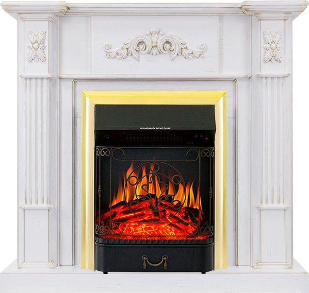 - Каминокомплект Martin - Белый дуб, патина золото с очагом Majestic FX Brass