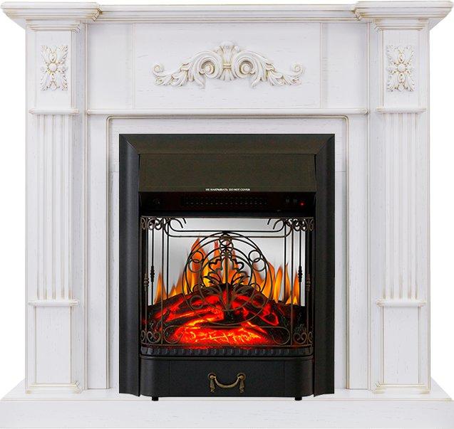 - Каминокомплект Martin - Белый дуб, патина золото с очагом Majestic FX M Black