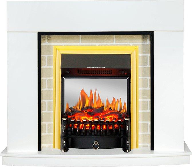 - Каминокомплект Montana - Белый с очагом Fobos FX M Brass