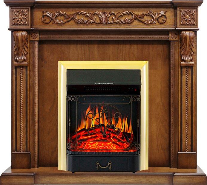 - Каминокомплект Neapol - Дуб антик с очагом Majestic FX Brass