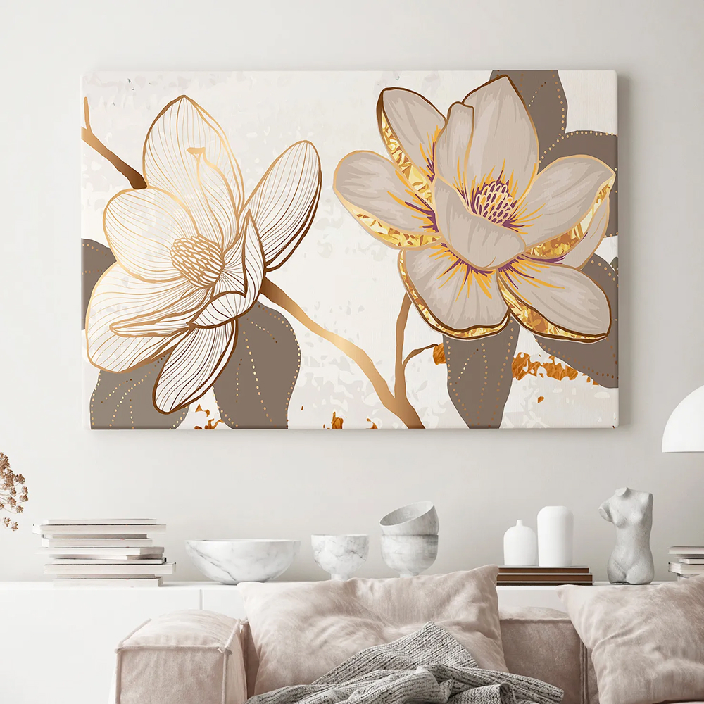 - Картина на стену большая на холсте интерьерная "Золотые лотосы", размер 50х80 см