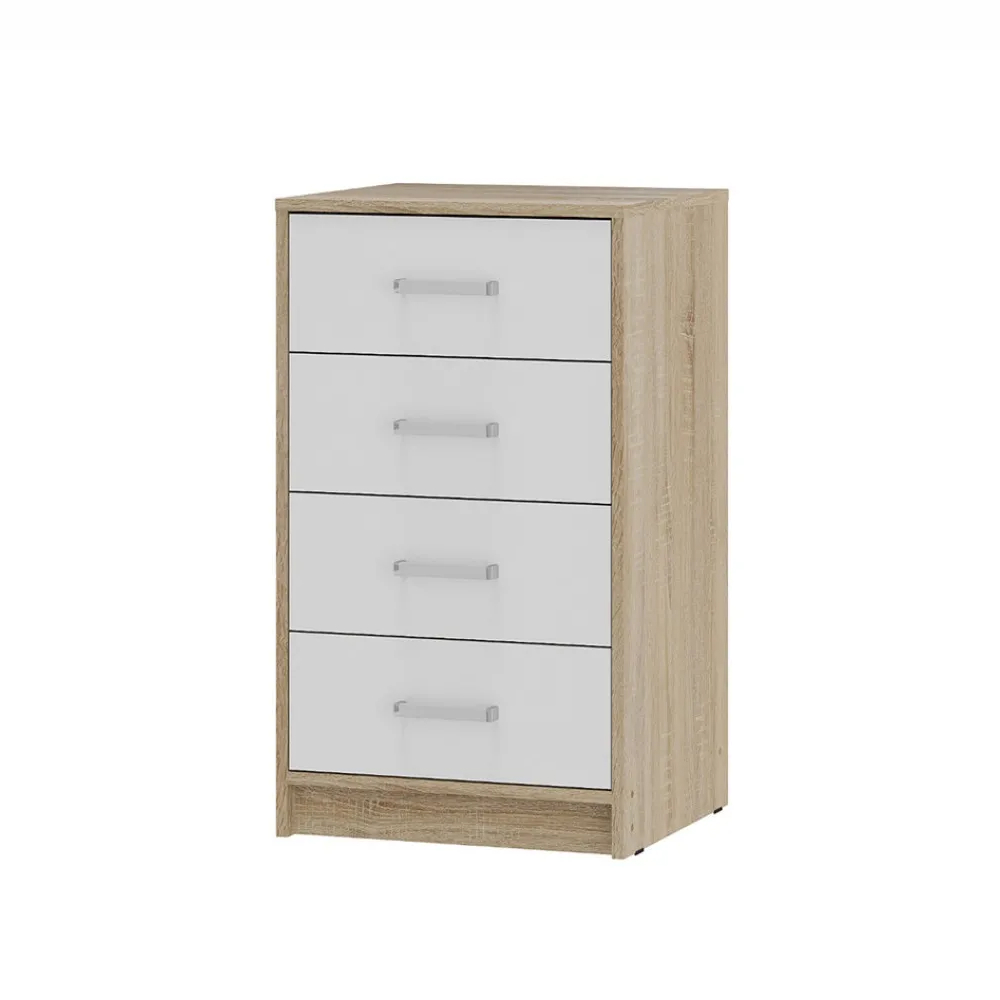 Комод Мия КМ-02 с четырьмя выдвижными ящиками предназначен для хранения белья, одежды, различных мелких домашних вещей. Максимальная нагрузка на ящик: 5 кг.
