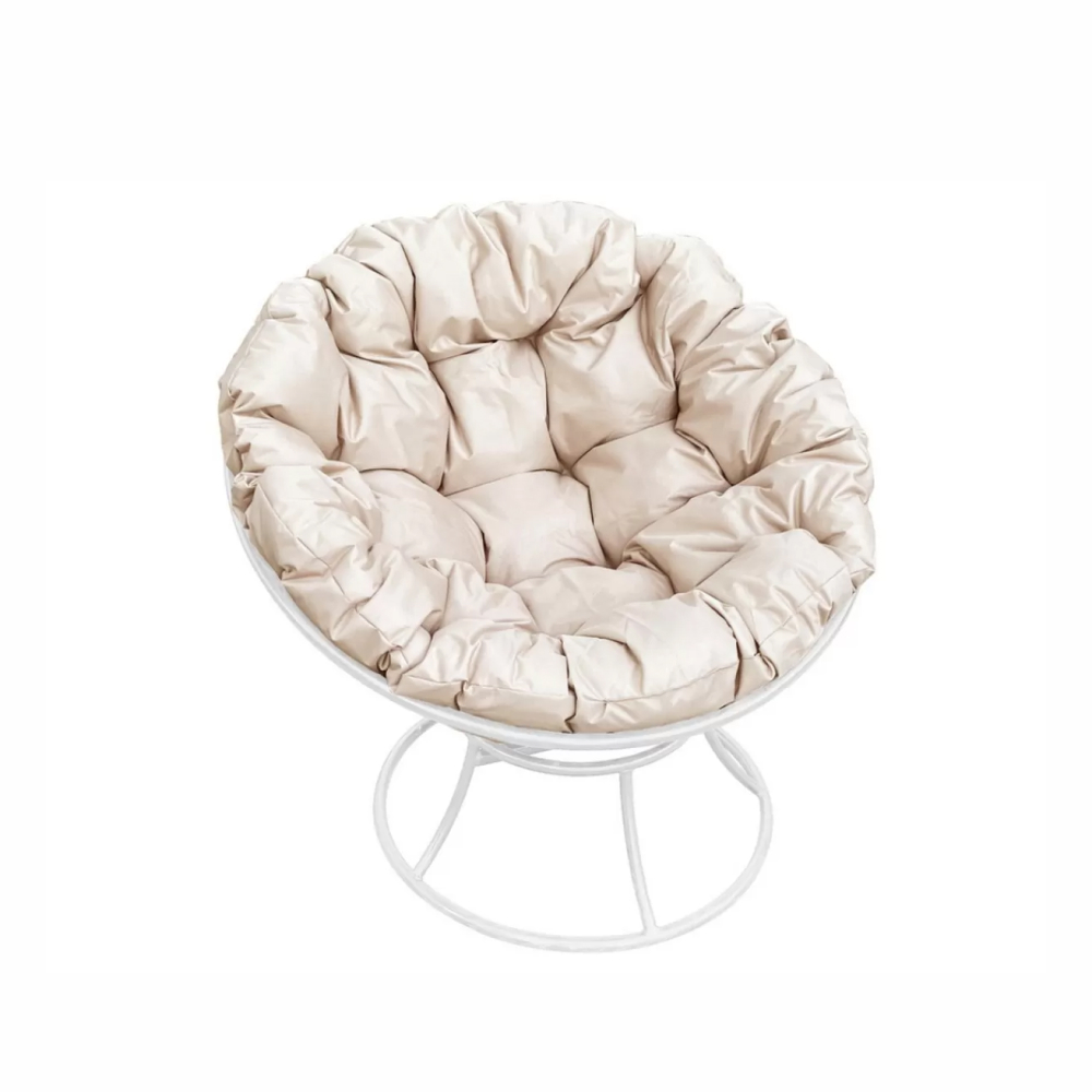 Комплект кресло Папасан без ротанга белое, бежевая подушка