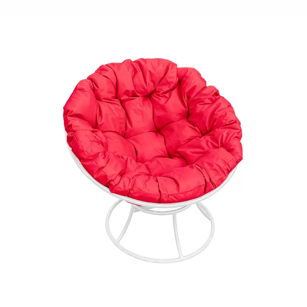 - Комплект кресло Папасан без ротанга белое, красная подушка