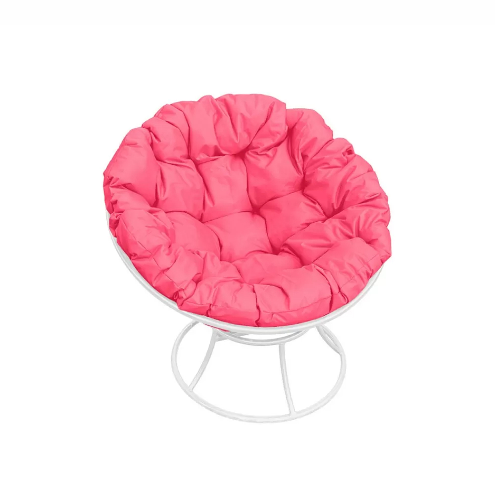 - Комплект кресло Папасан без ротанга белое, розовая подушка