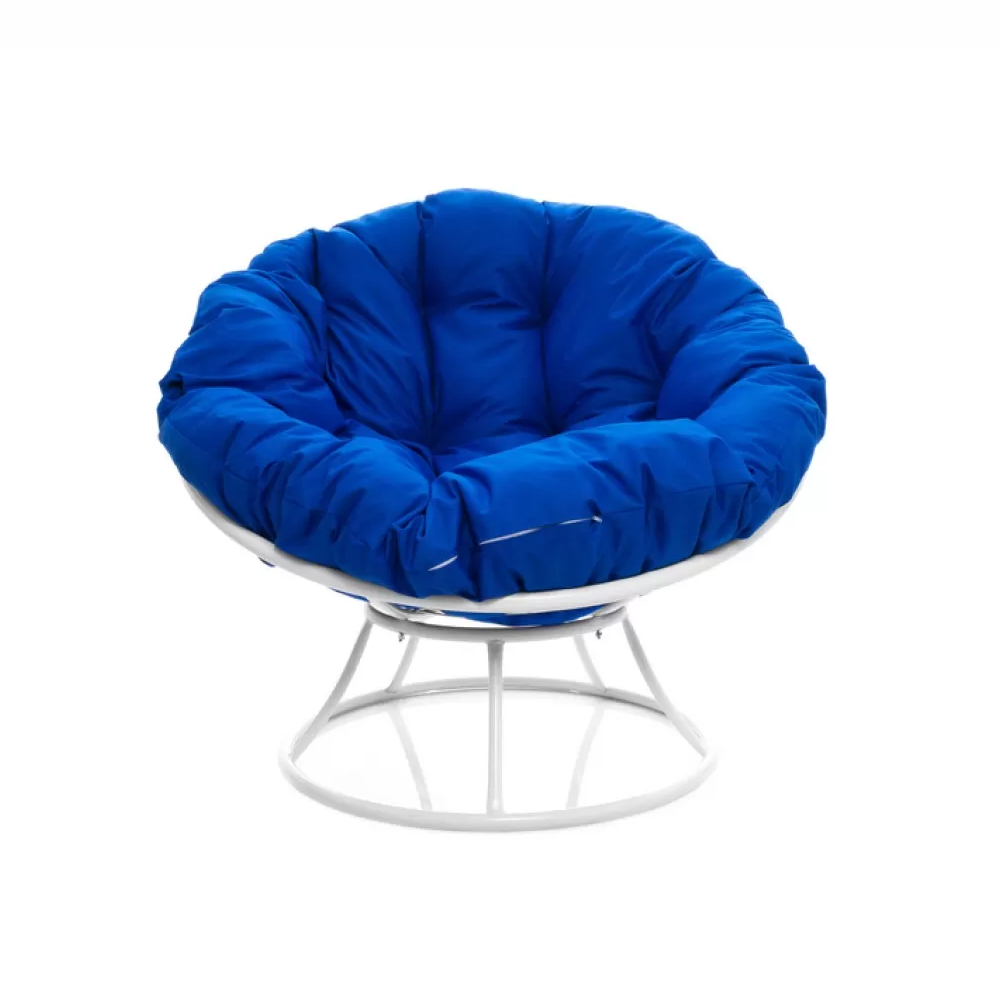Комплект кресло Папасан без ротанга белое, синяя подушка