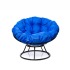 - Комплект кресло Папасан без ротанга черное, синяя подушка