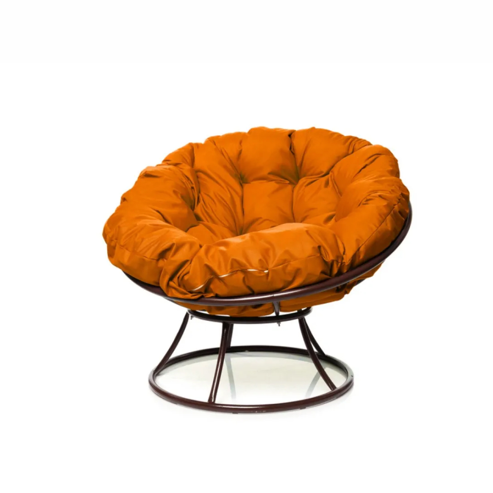- Комплект кресло Папасан без ротанга коричневое, оранжевая подушка