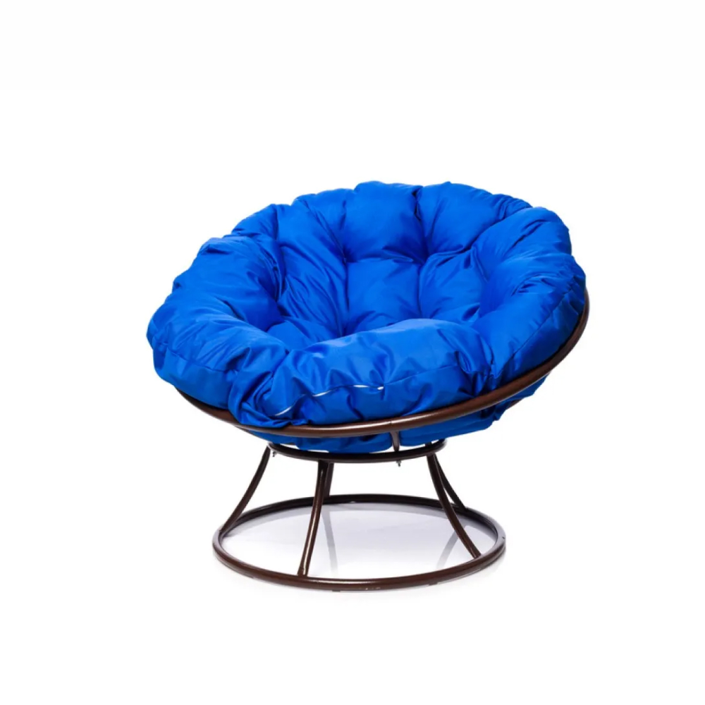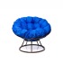 - Комплект кресло Папасан без ротанга коричневое, синяя подушка
