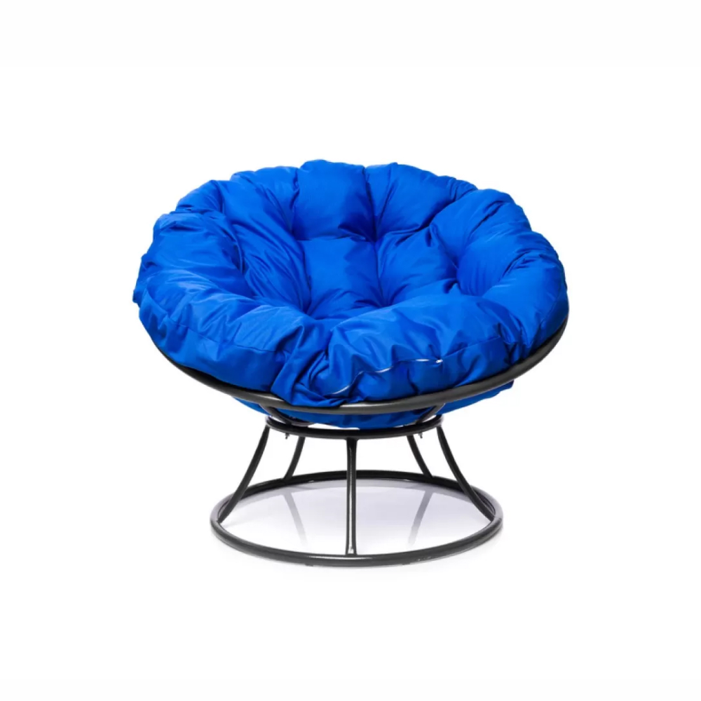 - Комплект кресло Папасан без ротанга серое, синяя подушка