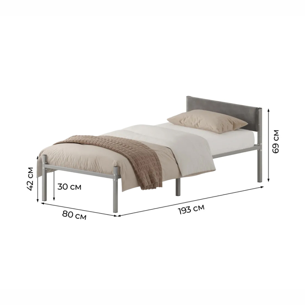 - Комплект кровать Металика Б80Х190+Г2 Цвет Серый + vel-RS-15-80