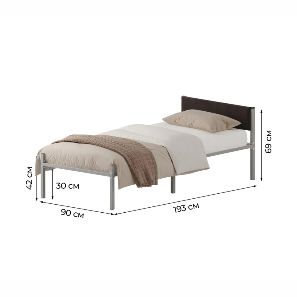 - Комплект кровать Металика Б90Х190+Г2 Цвет Серый + vel-RS-32-90
