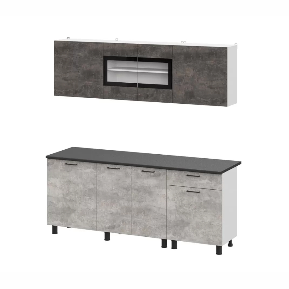 - Комплект Кухонный гарнитур "КГ 9"; (2,0м) Белый/Цемент темный/Цемент светлый/Черный
