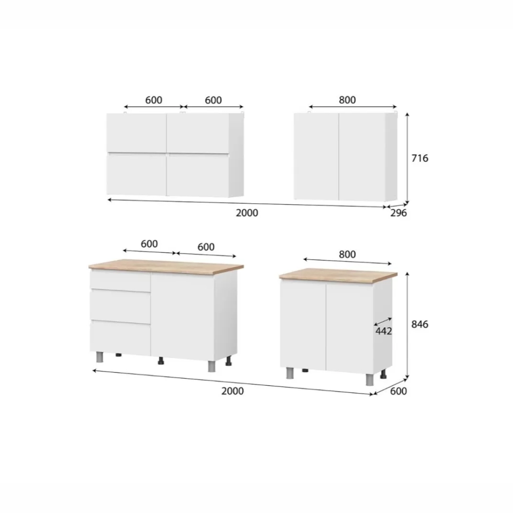 - Комплект Кухонный гарнитур "Токио" 2,0м Серия 3 Белый текстурный/Дуб Сонома