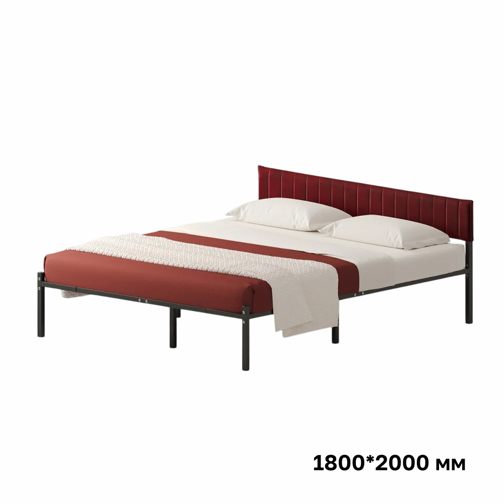 Комплект Лофт кровать 180х200 черная с бордовым чехлом тк 08