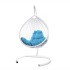- Комплект подвесное кресло Капля Люкс с ротангом белое, голубая подушка