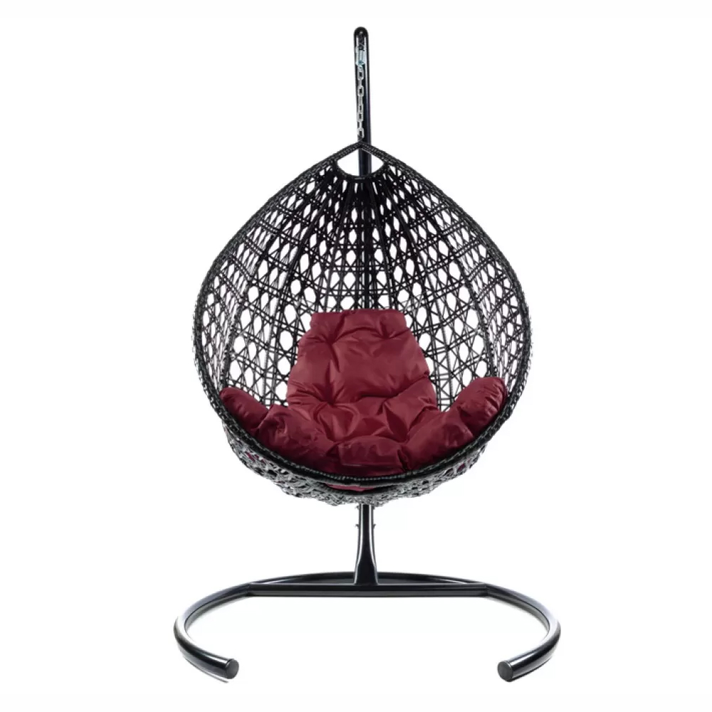 - Комплект подвесное кресло Капля Люкс с ротангом черное, бордовая подушка