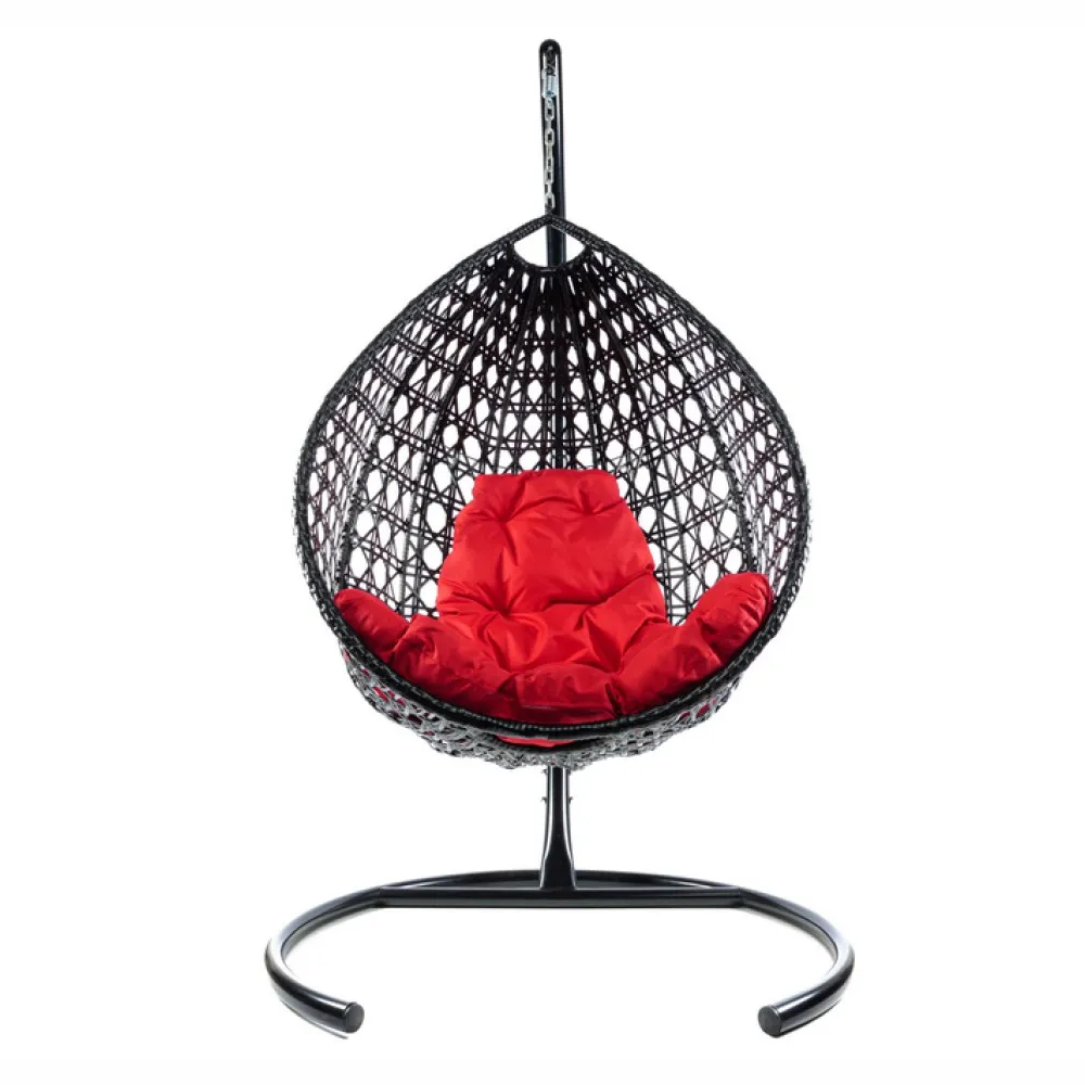 - Комплект подвесное кресло Капля Люкс с ротангом черное, красная подушка