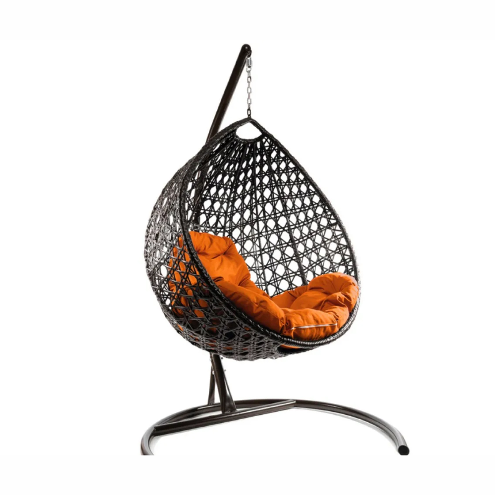 - Комплект подвесное кресло Капля Люкс с ротангом коричневое, оранжевая подушка