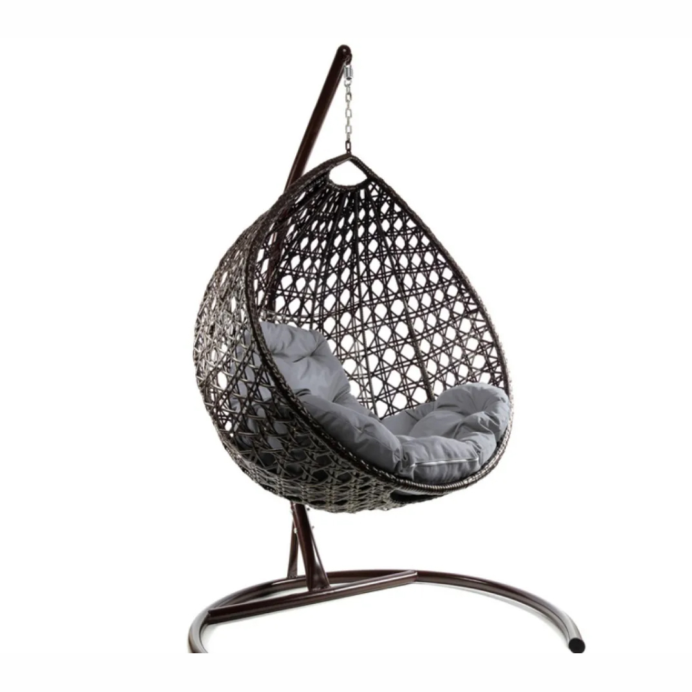 - Комплект подвесное кресло Капля Люкс с ротангом коричневое, серая подушка