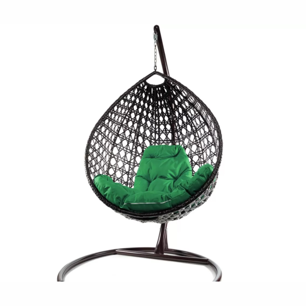 - Комплект подвесное кресло Капля Люкс с ротангом коричневое, зеленая подушка
