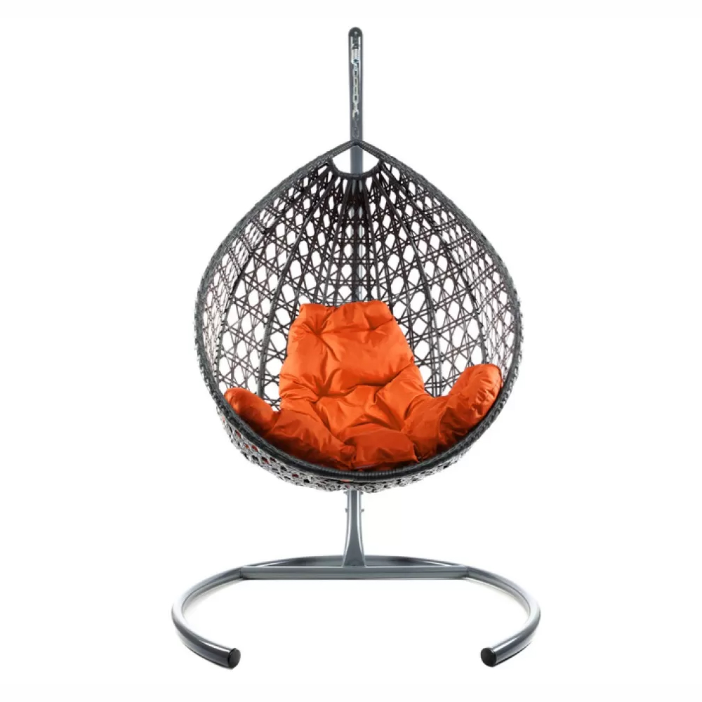 - Комплект подвесное кресло Капля Люкс с ротангом серое, оранжевая подушка