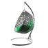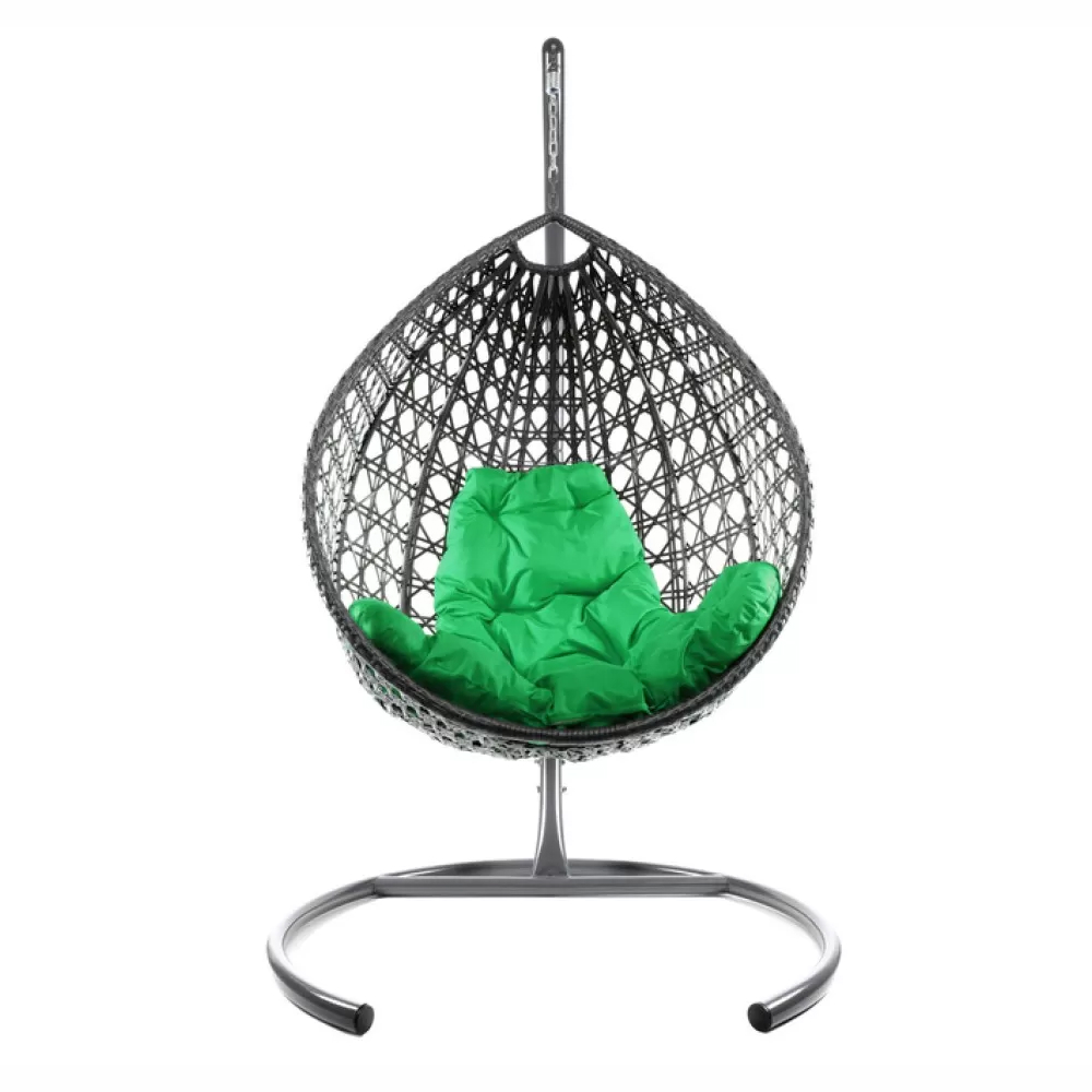 - Комплект подвесное кресло Капля Люкс с ротангом серое, зеленая подушка