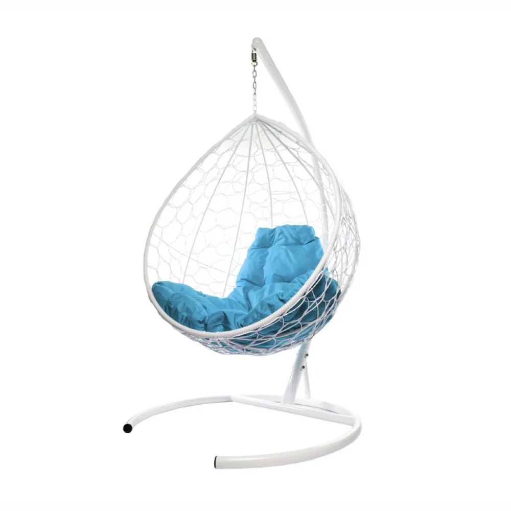 - Комплект подвесное кресло Капля с ротангом белое, голубая подушка