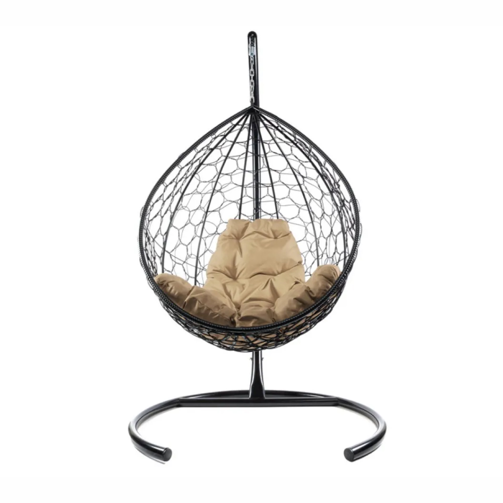 - Комплект подвесное кресло Капля с ротангом черное, бежевая подушка