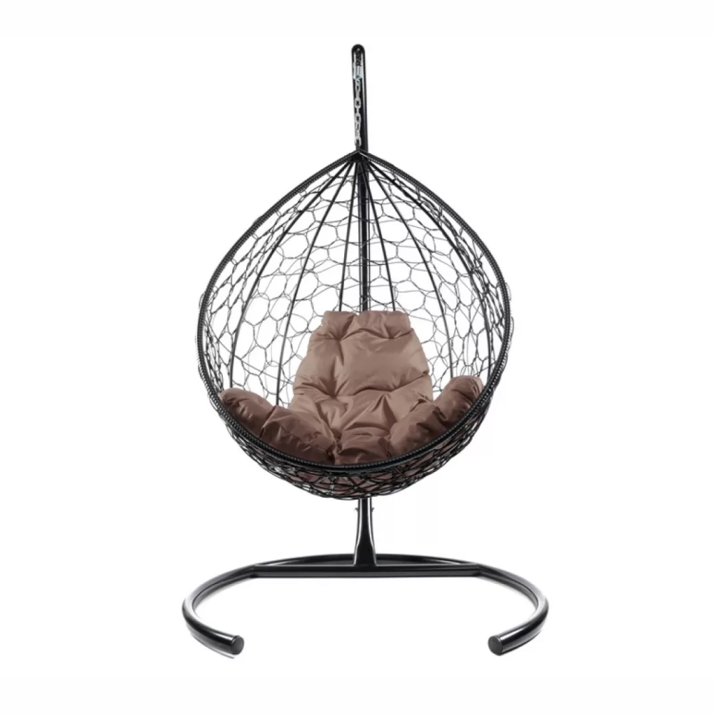 - Комплект подвесное кресло Капля с ротангом черное, коричневая подушка