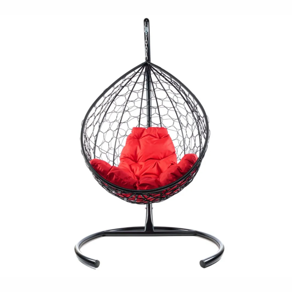 - Комплект подвесное кресло Капля с ротангом черное, красная подушка