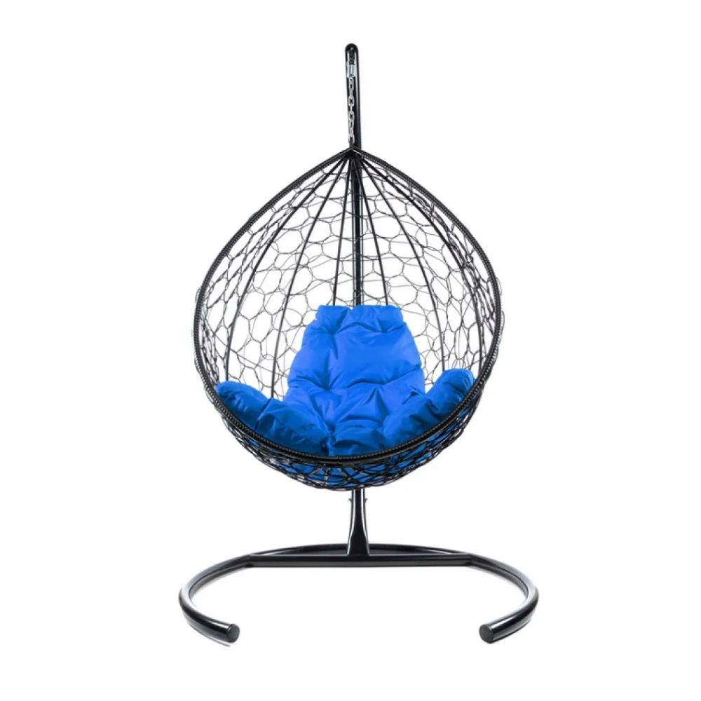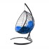 - Комплект подвесное кресло Капля с ротангом черное, синяя подушка