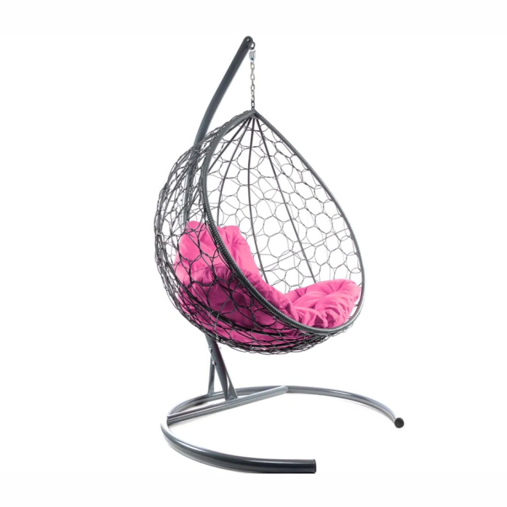 - Комплект подвесное кресло Капля с ротангом серое, розовая подушка