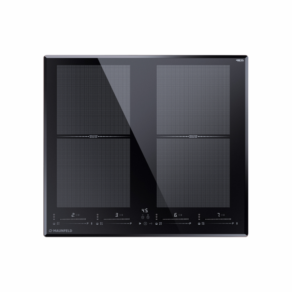Модель обладает четырьмя индукционными конфорками, каждая из которых имеет 9 ступеней мощности. Это позволяет выбрать оптимальную температуру для приготовления любого блюда. Функция Booster (усиление мощности) позволяет быстро довести воду до кипения или обжарить мясо до хрустящей корочки.