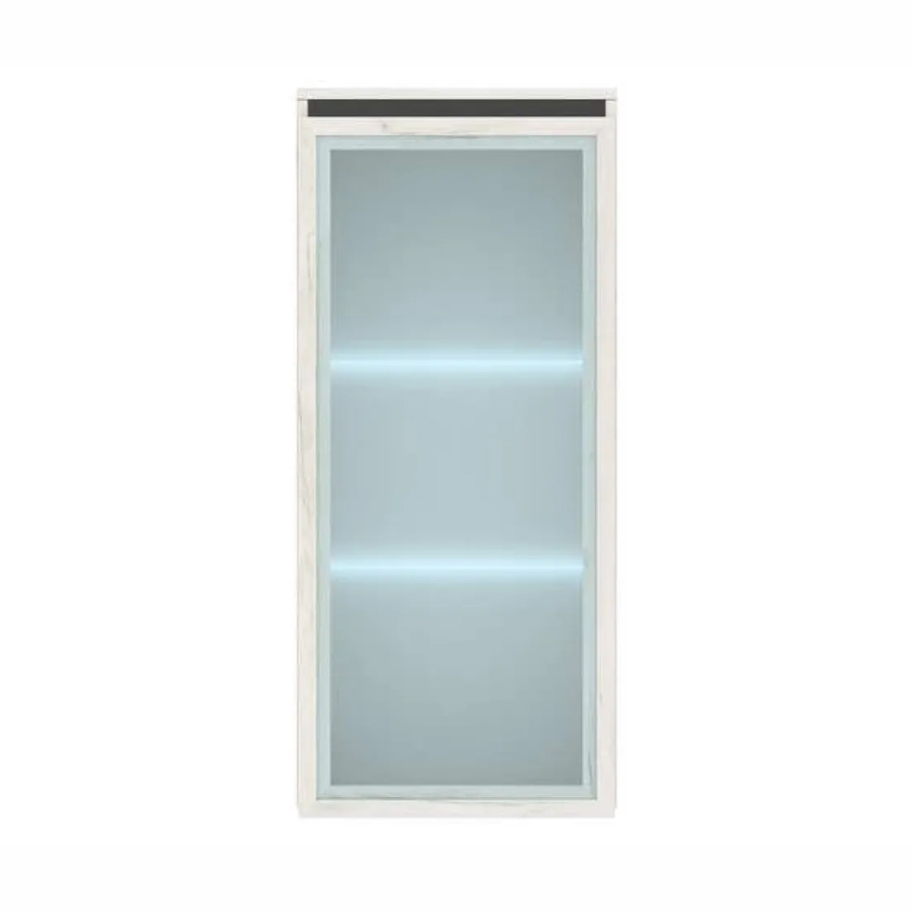 Пенал навесной 1В "ГРЕТТА" 1-створчатый со стеклополками. Фасад-витрина выполнен из профиля MDF. Опционально возможна установка светодиодной подсветки стеклополок.
