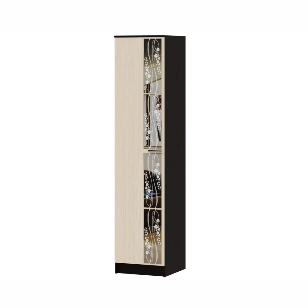 Пенал СП-500 "Сабина" с полками и зеркалами. Фасад облицован зеркалами с пескоструйным орнаментом, повторяющимся во всех элементах системы.