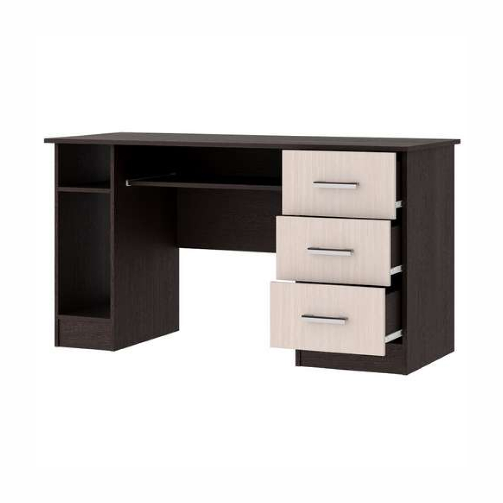 Письменно-компьютерный стол ПКС-4 с нишей для системного блока, с 3-мя ящиками и выдвижной полкой на роликовых направляющих. Столешница обработана кромкой толщиной 1 мм, что делает работу за столом более комфортной и удобной. Рабочая зона стола 1384 х 570 мм.