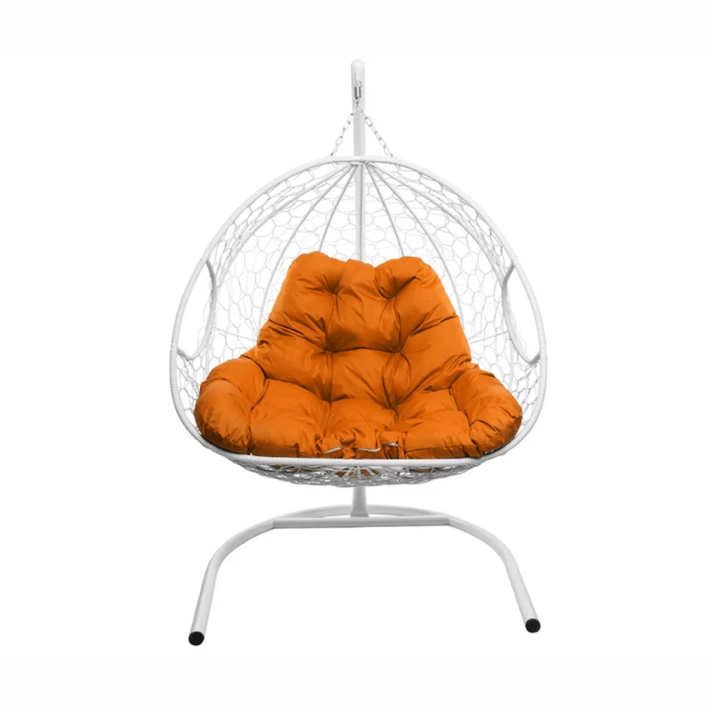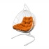 - Подвесное кресло для двоих с ротангом белое, оранжевая подушка